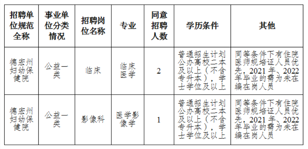 德宏州婦幼保健院2023年帶編考核招聘緊缺專業(yè)學(xué)科優(yōu)秀人才公告