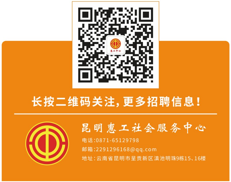 本公告最終解釋權(quán)歸昆明惠工社會服務(wù)中心所有,后續(xù)招聘相關(guān)信息請關(guān)注“惠工中心”微信公眾號。